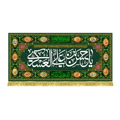 کتیبه ( پرچم ) مخمل ولادت امام حسن عسکری (ع) با ذکر یا حسن بن علی العسکری (ع) به همراه اسامی چهارده معصوم (ع) و دعای سلامتی امام زمان (عج) ، اللهم عجل لولیک الفرج ، اللهم صل علی محمد و آل محمد و عجل فرجهم - مناسب مجالس شادی و ولادت امام حسن عسکری (ع) در ابعاد مختلف ، پارچه مخمل قابل شستشو با بهترین کیفیت چاپ و پارچه، همراه با دور دوزی و ریشه دوزی می باشد. این محصول از طراحی تا چاپ به طور کامل در انتشارات مشهور به تولید رسیده است.
