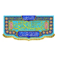 کتیبه ( پرچم ) مخمل ولادت حضرت زینب (س) به همراه اسامی چهارده معصوم (ع) و دعای سلامتی امام زمان (عج) ، السلام علیک یا اباعبدالله حسین (ع) - مناسب مجالس شادی و ولادت حضرت زینب کبری (س) در ابعاد مختلف ، پارچه مخمل قابل شستشو با بهترین کیفیت چاپ و پارچه، همراه با دور دوزی و ریشه دوزی می باشد. این محصول از طراحی تا چاپ به طور کامل در انتشارات مشهور به تولید رسیده است.