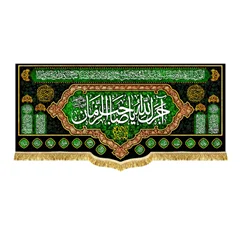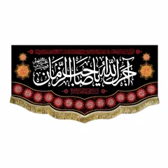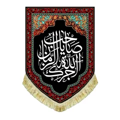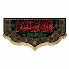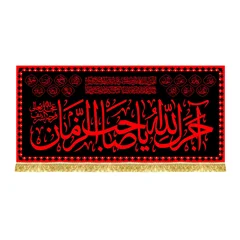 کتیبه ( پرچم ) مخمل آجرک الله یا صاحب الزمان (عج) به همراه اسامی چهارده معصوم (ع) و دعای سلامتی امام زمان (عج) ، اللهم عجل لولیک الفرج ، صلوات - مناسب مجالس عزاداری اهل بیت (ع) در ابعاد مختلف ، پارچه مخمل قابل شستشو با بهترین کیفیت چاپ و پارچه، همراه با دور دوزی و ریشه دوزی می باشد. این محصول از طراحی تا چاپ به طور کامل در انتشارات مشهور به تولید رسیده است.