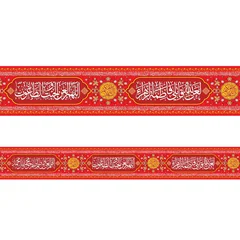 کتیبه ( پرچم ) مخمل اللهم العن الجبت و الطاغوت به رنگ قرمز به همراه اسامی چهارده معصوم (ع) و دعای سلامتی امام زمان (عج) ، اللهم عجل لولیک الفرج ، صلوات - مناسب مجالس شادی اهل بیت (ع) که در ابعاد مختلف قابل سفارش است. استفاده شده از پارچه مخمل قابل شستشو با بهترین کیفیت چاپ و پارچه، همراه با دور دوزی و ریشه دوزی می باشد. این محصول از طراحی تا چاپ به طور کامل در انتشارات مشهور به تولید رسیده است.