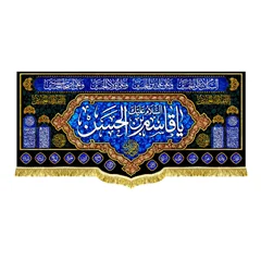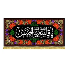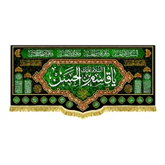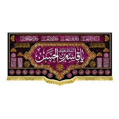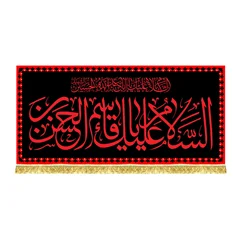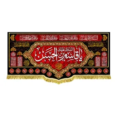 کتیبه ( پرچم ) مخمل نقاشی حضرت قاسم (ع) در آغوش امام حسین (ع) بعد از شهادت ( عمودی ) اثری از حسن روح الامین - مناسب منازل و هیئات مذهبی که در ابعاد مختلف قابل سفارش است. استفاده شده از پارچه مخمل قابل شستشو با بهترین کیفیت چاپ و پارچه، همراه با دور دوزی و ریشه دوزی می باشد. این محصول از طراحی تا چاپ به طور کامل در انتشارات مشهور به تولید رسیده است.