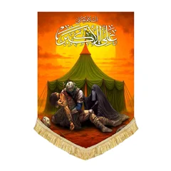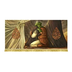کتیبه ( پرچم ) مخمل ( عمودی ) نقاشی جناب جون ، غلام امام حسین (ع) در آغوش اباعبدالله حسین (ع) - مناسب منازل و هیئات مذهبی که در ابعاد مختلف قابل سفارش است. استفاده شده از پارچه مخمل قابل شستشو با بهترین کیفیت چاپ و پارچه، همراه با دور دوزی و ریشه دوزی می باشد. این محصول از طراحی تا چاپ به طور کامل در انتشارات مشهور به تولید رسیده است.
