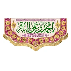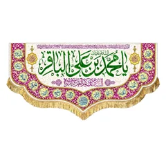کتیبه ( پرچم ) مخمل ولادت امام محمد باقر (ع) با ذکر یا محمد بن علی ایها الباقر (ع) و به همراه اسامی چهارده معصوم (ع) ، دعای سلامتی امام زمان (عج) ، السلام علیکم یا اهل بیت النبوه با طراحی جدید و رنگ های متنوع مناسب ایام ولادت حضرت امام باقر (ع) - مناسب منازل و هیئات مذهبی که در ابعاد مختلف قابل سفارش است. استفاده شده از پارچه مخمل قابل شستشو با بهترین کیفیت چاپ و پارچه، همراه با دور دوزی و ریشه دوزی می باشد. این محصول به طور کامل در انتشارات مشهور به تولید رسیده است.