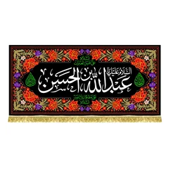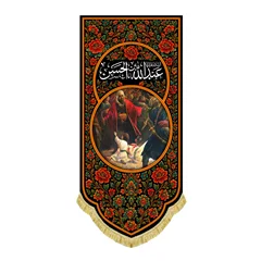 کتیبه ( پرچم ) مخمل نقاشی عبدالله ابن الحسن (ع) بالای سر حضرت اباعبدالله حسین (ع) در روز عاشورا - مناسب منازل و هیئات مذهبی که در ابعاد مختلف قابل سفارش است. استفاده شده از پارچه مخمل قابل شستشو با بهترین کیفیت چاپ و پارچه، همراه با دور دوزی و ریشه دوزی می باشد. این محصول از طراحی تا چاپ به طور کامل در انتشارات مشهور به تولید رسیده است.