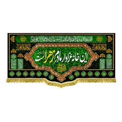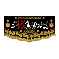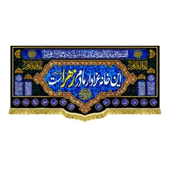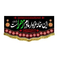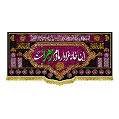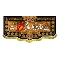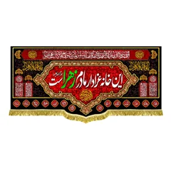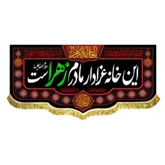 کتیبه ( پرچم ) مخمل این خانه عزادار مادرم زهراست با ذکر السلام علیک یا فاطمه الزهرا (س) و دعای سلامتی امام زمان (عج) - مناسب منازل و هیئات مذهبی که در ابعاد مختلف قابل سفارش است. استفاده شده از پارچه مخمل قابل شستشو با بهترین کیفیت چاپ و پارچه، همراه با دور دوزی و ریشه دوزی می باشد. این محصول از طراحی تا چاپ به طور کامل در انتشارات مشهور به تولید رسیده است.