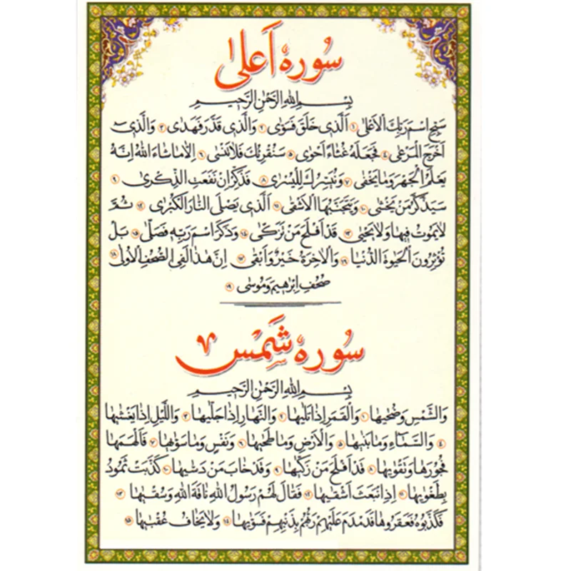 دعا کارتی (پرسی - طلقی) سوره های قدر، اعلی و شمس - 1 برگ ( 2 صفحه ) رنگی با روکش پلاستیک