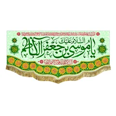 کتیبه ( پرچم ) مخمل ولادت امام موسی کاظم (ع) با ذکر یا موسی بن جعفر ایها الکاظم (ع) به همراه دعای سلامتی امام زمان (عج) ، صلوات و چهارده معصوم (ع) ، مناسب منازل و هیئات مذهبی که در ابعاد مختلف قابل سفارش است. استفاده شده از پارچه مخمل قابل شستشو با بهترین کیفیت چاپ و پارچه، همراه با دور دوزی و ریشه دوزی می باشد. این محصول از طراحی تا چاپ و خیاطی به طور کامل در انتشارات مشهور به تولید رسیده است.