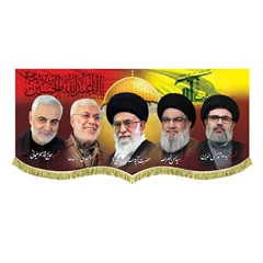 کتیبه ( پرچم ) مخمل شهید ابومهدی المهندس ( جمال جعفر محمد آل ابراهیم " یا "جمال ابراهیمی ) جانشین فرمانده حشد شعبی عراق ، مناسب منازل و هیئات مذهبی که در ابعاد مختلف قابل سفارش است. استفاده شده از پارچه مخمل قابل شستشو با بهترین کیفیت چاپ و پارچه، همراه با دور دوزی و ریشه دوزی می باشد. این محصول از طراحی تا چاپ و خیاطی به طور کامل در انتشارات مشهور به تولید رسیده است.