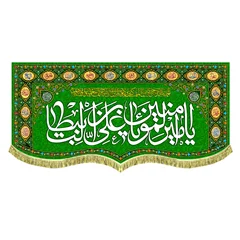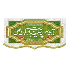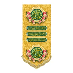 کتیبه ( پرچم ) مخمل یا علی بن ابیطالب (ع) به همراه اسامی چهارده معصوم (ع) و من کنت مولاه فهذا علی مولاه ، الحمدلله الذی جعلنا من المتمسکین بولایه علی بن ابی طالب (ع) ، اللهم عجل لولیک الفرج - مناسب ولادت امام علی (ع) و عید غدیر خم با طراحی جدید و رنگ بندی متنوع که در ابعاد مختلف قابل سفارش است. استفاده شده از پارچه مخمل قابل شستشو با بهترین کیفیت چاپ و پارچه، همراه با دور دوزی و ریشه دوزی می باشد. این محصول از طراحی تا چاپ به طور کامل در انتشارات مشهور به تولید رسیده است.