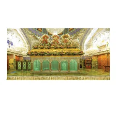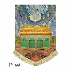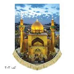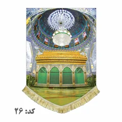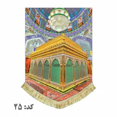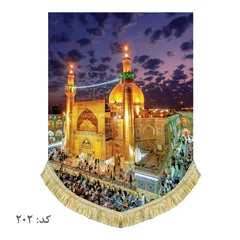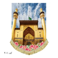 کتیبه ( پرچم ) مخمل ضریح حرم امیرالمومنین علی (ع) در نجف اشرف که در ابعاد مختلف قابل سفارش است. استفاده شده از پارچه مخمل قابل شستشو با بهترین کیفیت چاپ و پارچه، همراه با دور دوزی و ریشه دوزی می باشد. این محصول از طراحی تا چاپ به طور کامل در انتشارات مشهور به تولید رسیده است.