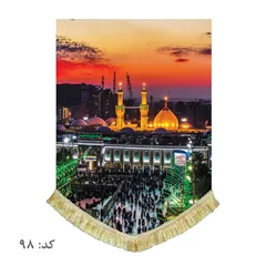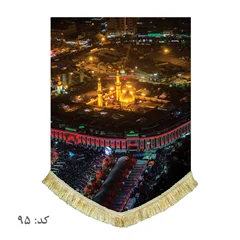 کتیبه ( پرچم ) مخمل حرم امام حسین (ع) در کربلای معلا به صورت عمودی که در سایزهای مختلف قابل سفارش است. استفاده شده از پارچه مخمل قابل شستشو با بهترین کیفیت چاپ و پارچه، که همراه با دور دوزی و ریشه دوزی می باشد. این محصول از طراحی تا چاپ به طور کامل در انتشارات مشهور به تولید رسیده است.