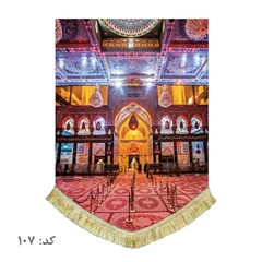 کتیبه ( پرچم ) مخمل حرم امام حسین (ع) در کربلای معلا به صورت عمودی که در سایزهای مختلف قابل سفارش است. استفاده شده از پارچه مخمل قابل شستشو با بهترین کیفیت چاپ و پارچه، که همراه با دور دوزی و ریشه دوزی می باشد. این محصول از طراحی تا چاپ به طور کامل در انتشارات مشهور به تولید رسیده است.