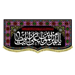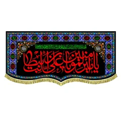کتیبه ( پرچم ) آویز مخمل السلام علیک یا امیرالمومنین یا علی بن ابیطالب (ع) به همراه اسامی چهارده معصوم (ع) ، مناسب ایام شهادت امیرالمومنین علی (ع) و شب های قدر با طراحی عمودی در ابعاد مختلف قابل سفارش است. استفاده شده از پارچه مخمل قابل شستشو با بهترین کیفیت چاپ و پارچه، همراه با دور دوزی و ریشه دوزی می باشد. این محصول از طراحی تا چاپ به طور کامل در انتشارات مشهور به تولید رسیده است.