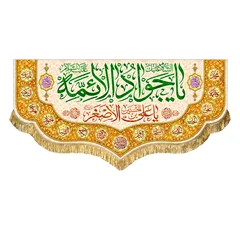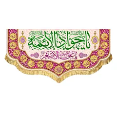 کتیبه ( پرچم ) مخمل ولادت امام جواد (ع) با ذکر یا محمد بن علی ایها التقی الجواد (ع) به همراه ذکر اللهم عجل لولیک الفرج ، صلوات و دعای سلامتی امام زمان (عج) که با طراحی جدید و ساده در ابعاد مختلف قابل سفارش است. استفاده شده از پارچه مخمل قابل شستشو با بهترین کیفیت چاپ و پارچه، همراه با دور دوزی و ریشه دوزی می باشد. این محصول از طراحی تا چاپ به طور کامل در انتشارات مشهور به تولید رسیده است.