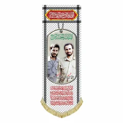 کتیبه ( پرچم ) مخمل شهید ابراهیم همت و شهید حسین خرازی ( شهدای هشت سال دفاع مقدس ) با طراحی جدید، در ابعاد مختلف قابل سفارش است. استفاده شده از پارچه مخمل قابل شستشو با بهترین کیفیت چاپ و پارچه که همراه با دور دوزی و ریشه دوزی می باشد. این محصول از طراحی تا چاپ به طور کامل در انتشارات مشهور به تولید رسیده است.
