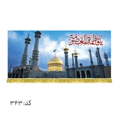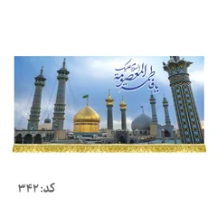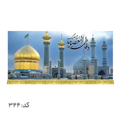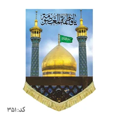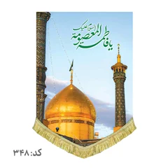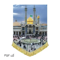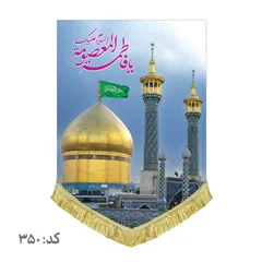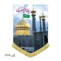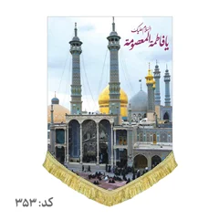 کتیبه ( پرچم ) مخمل عمودی حرم حضرت فاطمه معصومه (س) در شهر مقدس قم، در ابعاد مختلف قابل سفارش است. استفاده شده از پارچه مخمل قابل شستشو با بهترین کیفیت چاپ و پارچه که همراه با دور دوزی ، ریشه دوزی و بندینک آویز می باشد. این محصول از طراحی تا چاپ به طور کامل در انتشارات مشهور به تولید رسیده است.