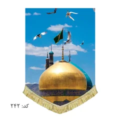کتیبه ( پرچم ) مخمل عمودی حرم امام رضا (ع) در مشهد مقدس، در ابعاد مختلف قابل سفارش است. استفاده شده از پارچه مخمل قابل شستشو با بهترین کیفیت چاپ و پارچه که همراه با دور دوزی ، ریشه دوزی و بندینک آویز می باشد. این محصول از طراحی تا چاپ به طور کامل در انتشارات مشهور به تولید رسیده است.