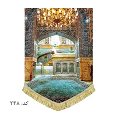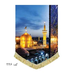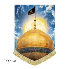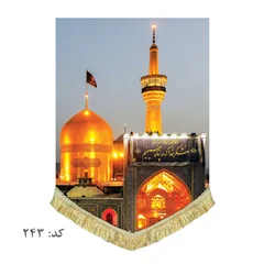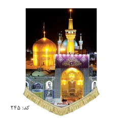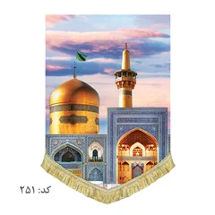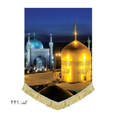 کتیبه ( پرچم ) مخمل عمودی حرم امام رضا (ع) در مشهد مقدس، در ابعاد مختلف قابل سفارش است. استفاده شده از پارچه مخمل قابل شستشو با بهترین کیفیت چاپ و پارچه که همراه با دور دوزی ، ریشه دوزی و بندینک آویز می باشد. این محصول از طراحی تا چاپ به طور کامل در انتشارات مشهور به تولید رسیده است.