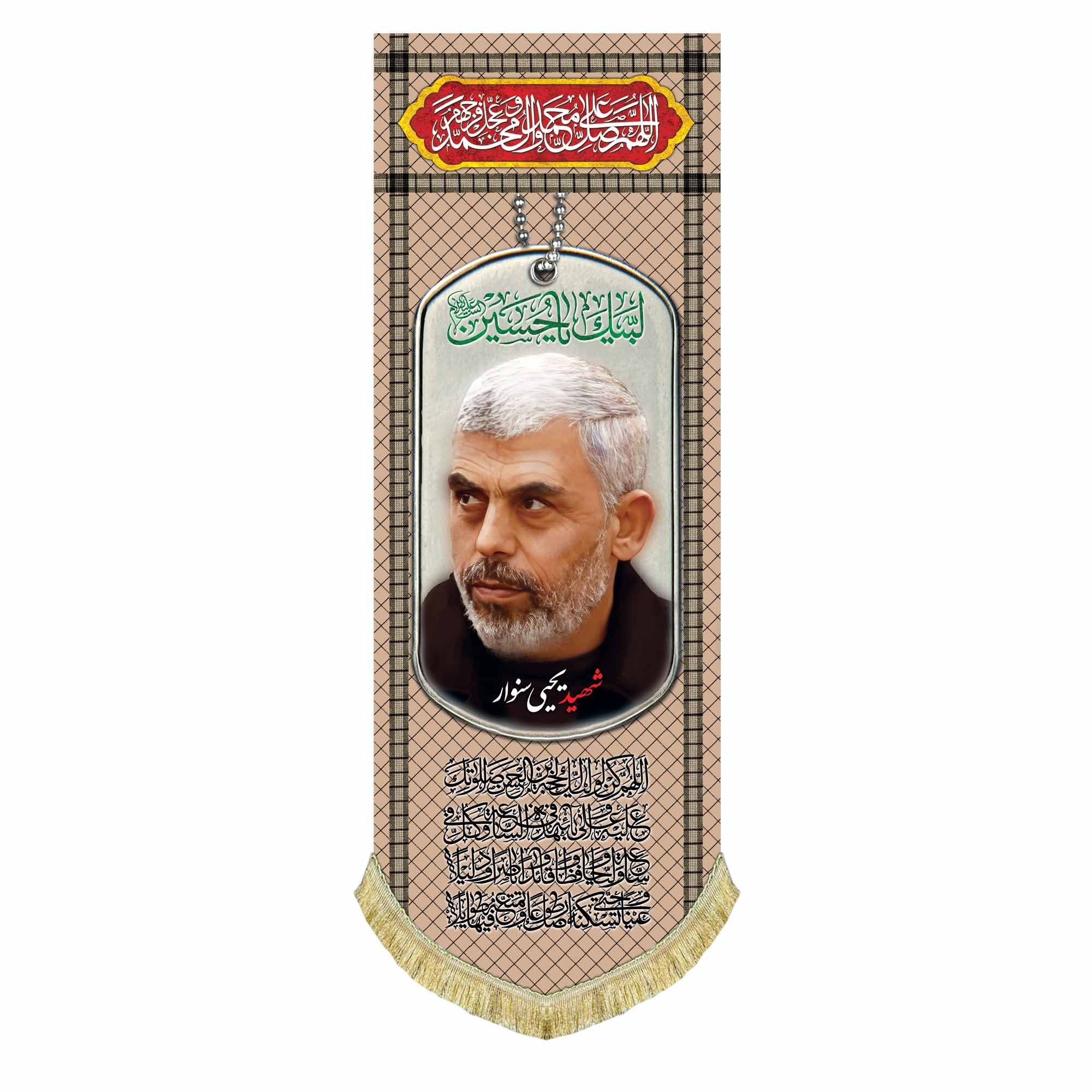 کتیبه ( پرچم ) مخمل شهید یحیی سنوار ( شهید حماس فلسطین ) به همراه ذکر لبیک یا حسین (ع) ، صلوات و دعای سلامتی امام زمان (عج) که با طراحی جدید چفیه رنگ خاکی و پلاک در سایز عمودی قابل سفارش است. استفاده شده از پارچه مخمل درجه یک قابل شستشو با بهترین کیفیت چاپ و پارچه که همراه با دور دوزی و ریشه دوزی می باشد. این محصول از طراحی تا چاپ به طور کامل در مجموعه انتشارات مشهور به تولید رسیده است.