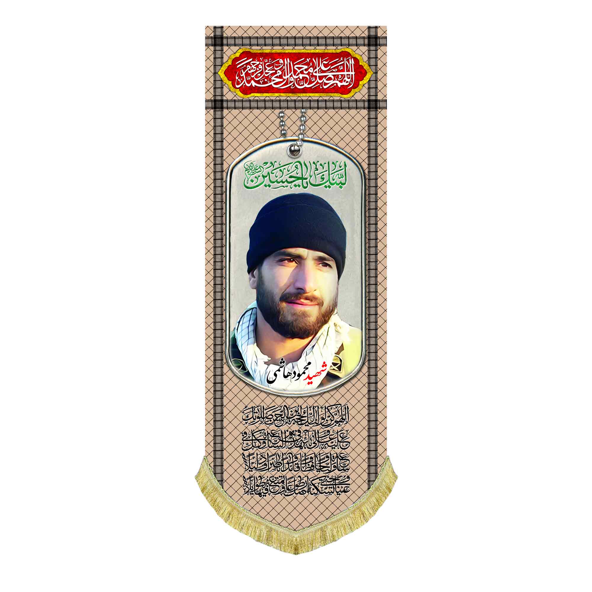 کتیبه ( پرچم ) مخمل شهید محمود هاشمی که با طراحی جدید چفیه خاکی و پلاک به همراه ذکر لبیک یا حسین (ع) ، اللهم صل علی محمد و آل محمد و عجل فرجهم و دعای سلامتی امام زمان (عج) در سایز عمودی قابل سفارش است. استفاده شده از پارچه مخمل درجه یک قابل شستشو و با بهترین کیفیت چاپ که همراه با دور دوزی ، ریشه دوزی و بندینک آویز می باشد. این محصول از طراحی تا چاپ به طور کامل در مجموعه انتشارات مشهور به تولید رسیده است.