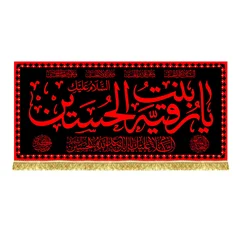 کتیبه ( پرچم ) مخمل شهادت حضرت رقیه (س) با ذکر یا رقیه بنت الحسین (ع) به همراه اسامی چهارده معصوم (ع) و السلام علیک یا اباعبدالله الحسین (ع) ، السلام علیک یا ابالفضل العباس (ع) ، السلام علیک یا زینب کبری (س) ، السلام علیک یا علی الاکبر (ع) و چهار سلام زیارت عاشورا با طراحی جدید که در ابعاد مختلف قابل سفارش است. استفاده شده از پارچه مخمل قابل شستشو با بهترین کیفیت چاپ و پارچه که همراه با دور دوزی ، ریشه دوزی و بندینک آویز می باشد. این محصول از طراحی تا چاپ به طور کامل در انتشارات مشهور به تولید رسیده است.