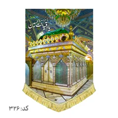 کتیبه ( پرچم ) مخمل حضرت رقیه (س) با ذکر یا رقیه بنت الحسین (ع) به همراه اسامی چهارده معصوم (ع) ، السلام علیک یا اباعبدالله الحسین (ع) و السلام علیک یا زینب کبری (س) که با طراحی جدید در ابعاد مختلف قابل سفارش است. استفاده شده از پارچه مخمل قابل شستشو با بهترین کیفیت چاپ و پارچه که همراه با دور دوزی ، ریشه دوزی و بندینک آویز می باشد. این محصول از طراحی تا چاپ به طور کامل در انتشارات مشهور به تولید رسیده است.