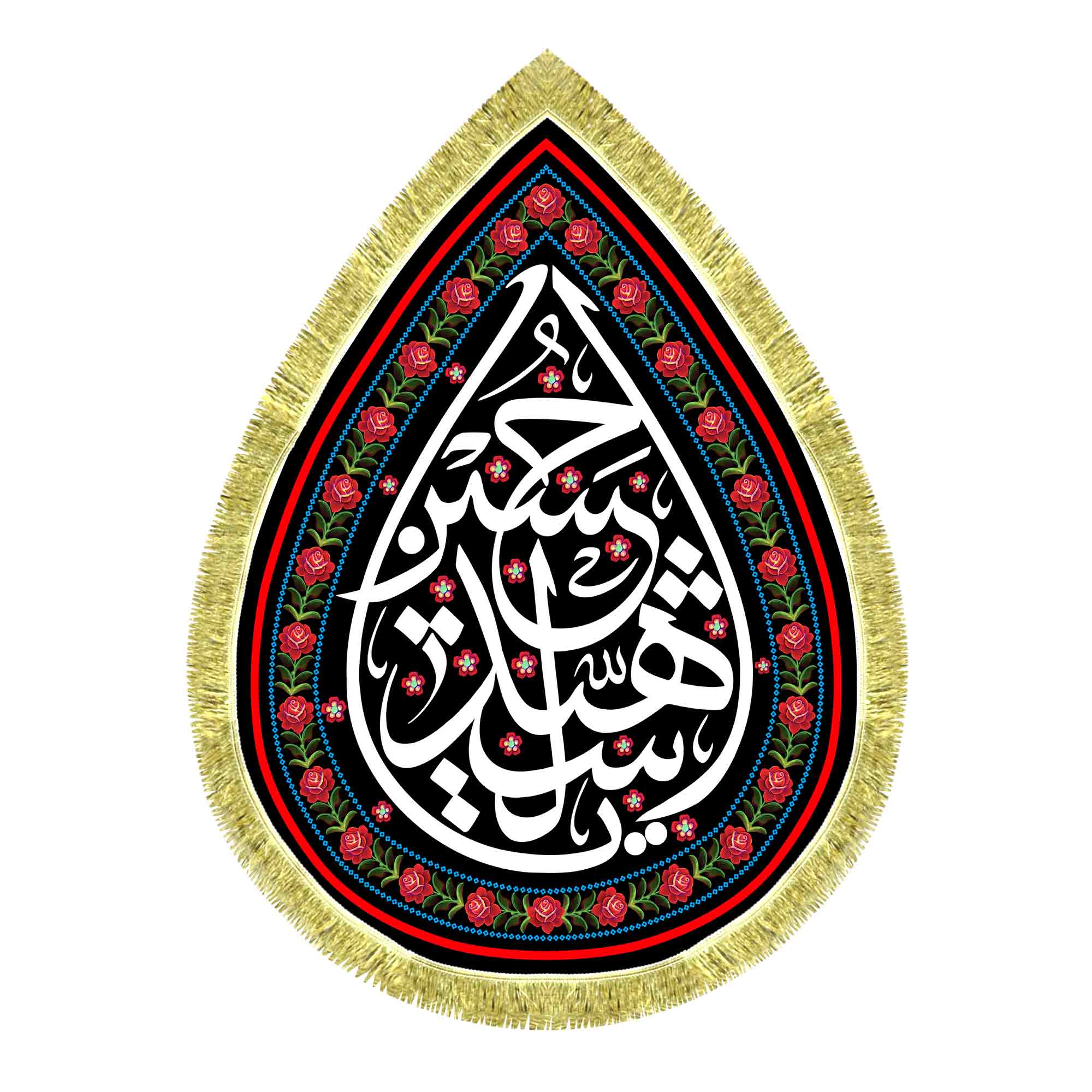 کتیبه مخمل طرح اشک ( قطره ای ) محرم یاحسین شهید که با طراحی جدید دور ریشه در ابعاد مختلف قابل سفارش است. استفاده شده از پارچه مخمل درجه یک قابل شستشو و با بهترین کیفیت چاپ که همراه با ریشه دوزی دور و بندینک آویز می باشد. این محصول از طراحی تا چاپ به طور کامل در انتشارات مشهور به تولید رسیده است.
