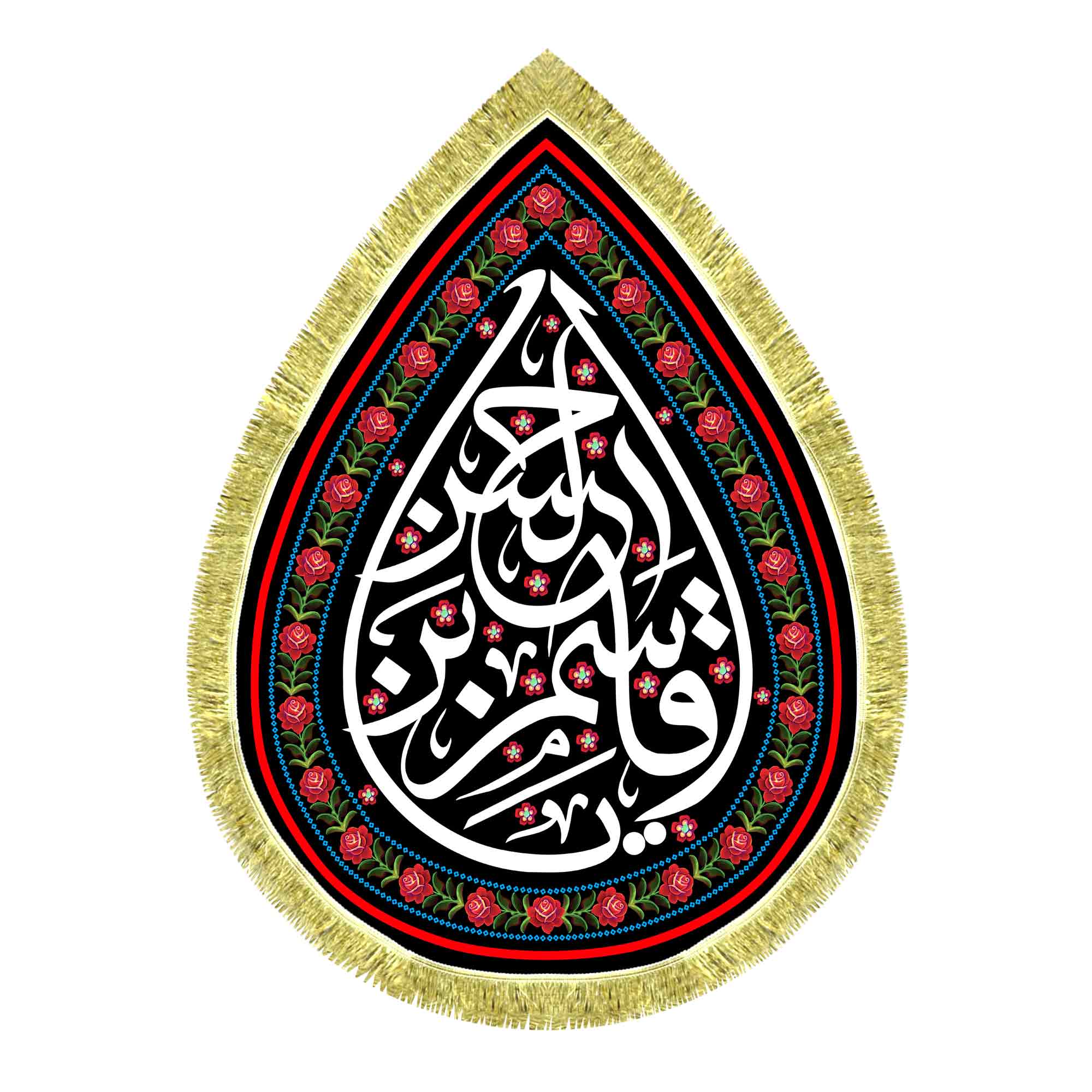 کتیبه مخمل طرح اشک ( قطره ای ) شهادت حضرت قاسم (ع) با ذکر یا قاسم بن الحسن (ع) که با طراحی جدید دور ریشه در ابعاد مختلف قابل سفارش است. استفاده شده از پارچه مخمل درجه یک قابل شستشو و با بهترین کیفیت چاپ که همراه با ریشه دوزی دور و بندینک آویز می باشد. این محصول از طراحی تا چاپ به طور کامل در انتشارات مشهور به تولید رسیده است.