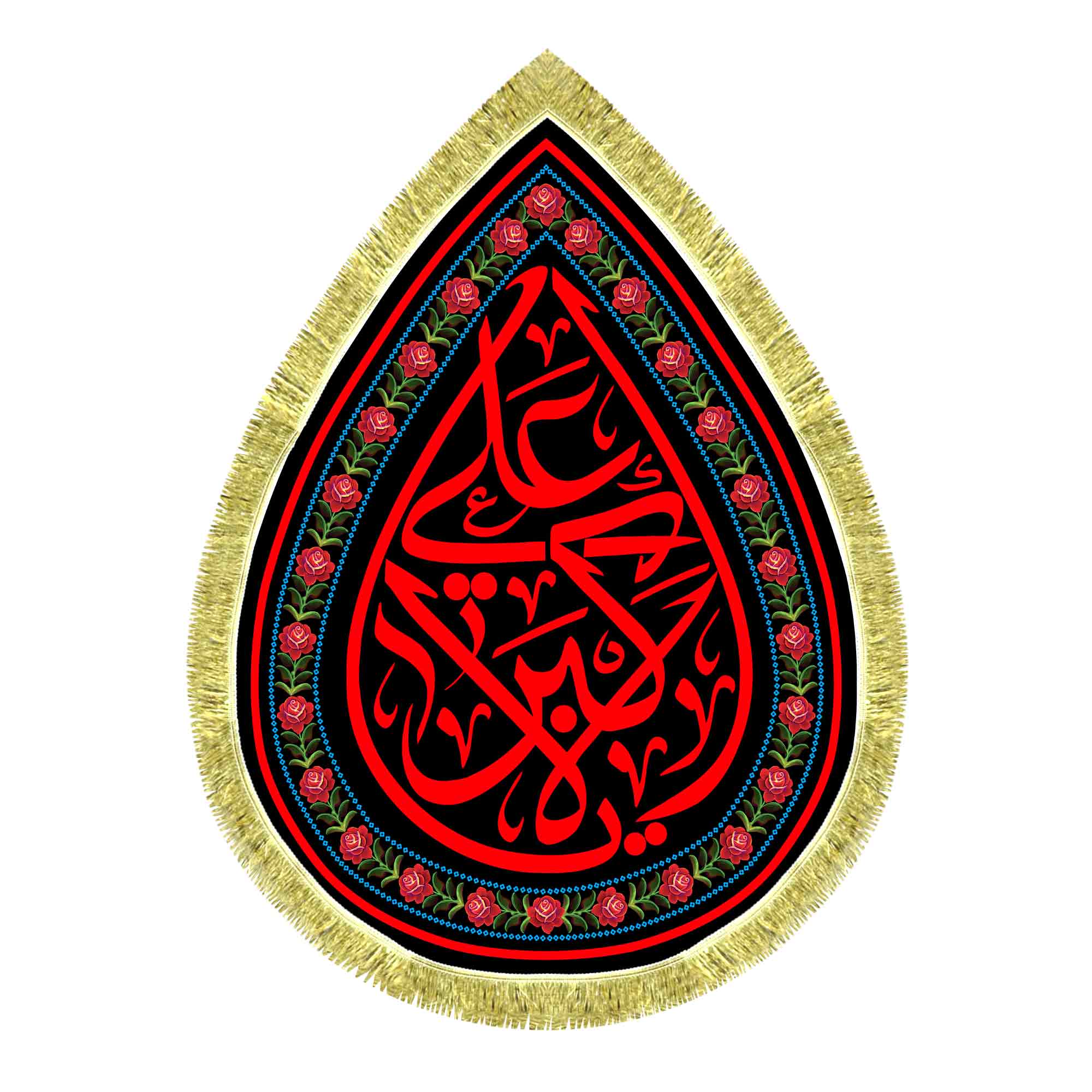 کتیبه مخمل طرح اشک ( قطره ای ) شهادت حضرت علی اکبر (ع) با ذکر یا علی اکبر (ع) که با طراحی جدید دور ریشه در ابعاد مختلف قابل سفارش است. استفاده شده از پارچه مخمل درجه یک قابل شستشو و با بهترین کیفیت چاپ که همراه با ریشه دوزی دور و بندینک آویز می باشد. این محصول از طراحی تا چاپ به طور کامل در انتشارات مشهور به تولید رسیده است.