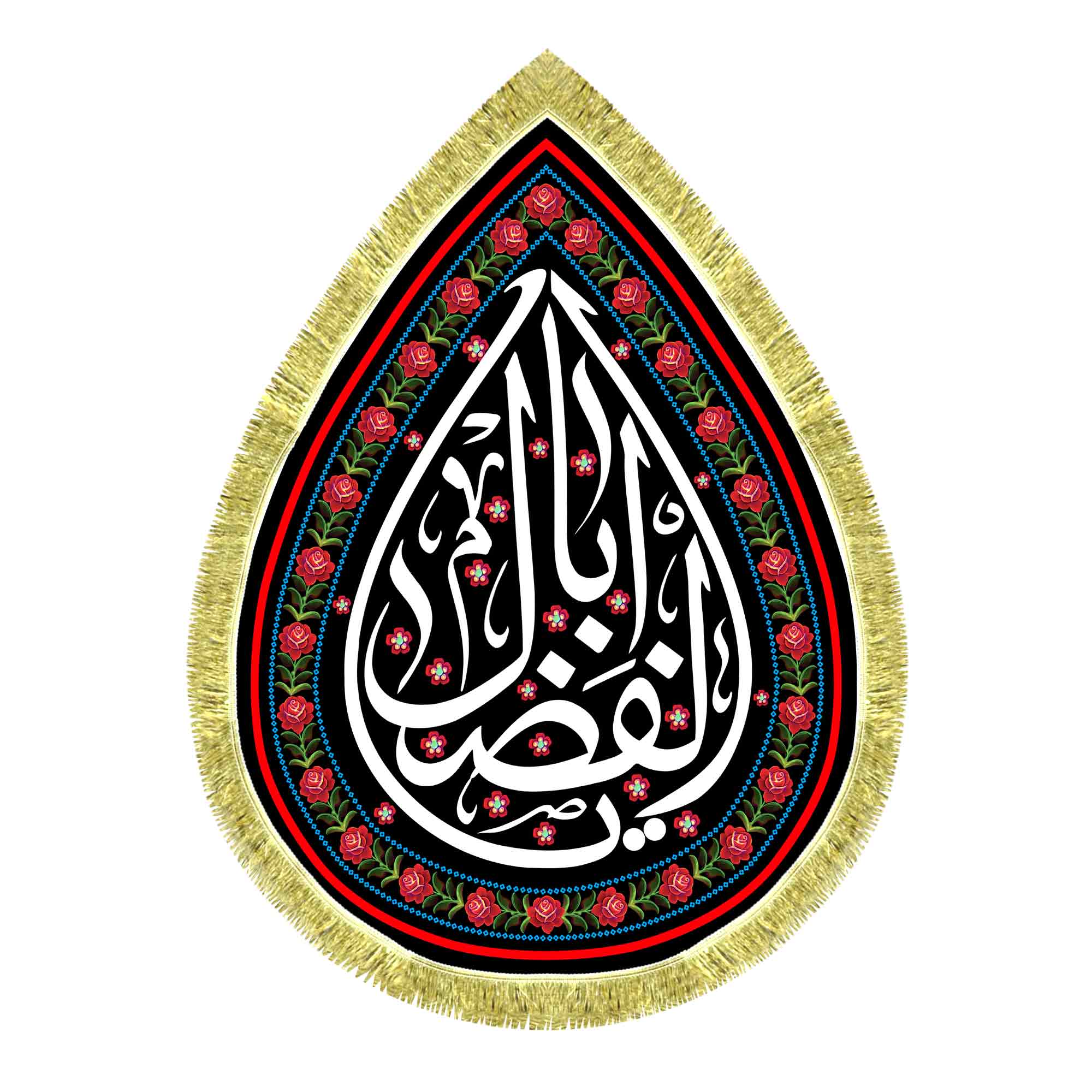 کتیبه مخمل طرح اشک ( قطره ای ) شهادت حضرت عباس (ع) با ذکر یا اباالفضل (ع) که با طراحی جدید دور ریشه در ابعاد مختلف قابل سفارش است. استفاده شده از پارچه مخمل درجه یک قابل شستشو و با بهترین کیفیت چاپ که همراه با ریشه دوزی دور و بندینک آویز می باشد. این محصول از طراحی تا چاپ به طور کامل در انتشارات مشهور به تولید رسیده است.