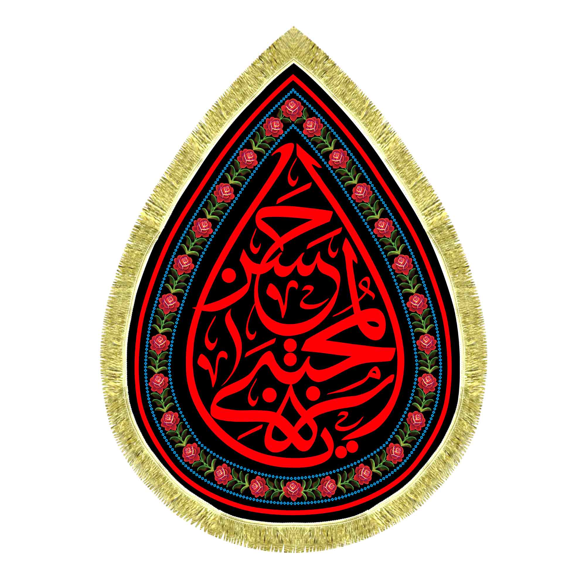 کتیبه مخمل طرح اشک ( قطره ای ) شهادت امام حسن مجتبی (ع) با ذکر یا حسن المجتبی (ع) که با طراحی جدید دور ریشه در ابعاد مختلف قابل سفارش است. استفاده شده از پارچه مخمل درجه یک قابل شستشو و با بهترین کیفیت چاپ که همراه با ریشه دوزی دور و بندینک آویز می باشد. این محصول از طراحی تا چاپ به طور کامل در انتشارات مشهور به تولید رسیده است.