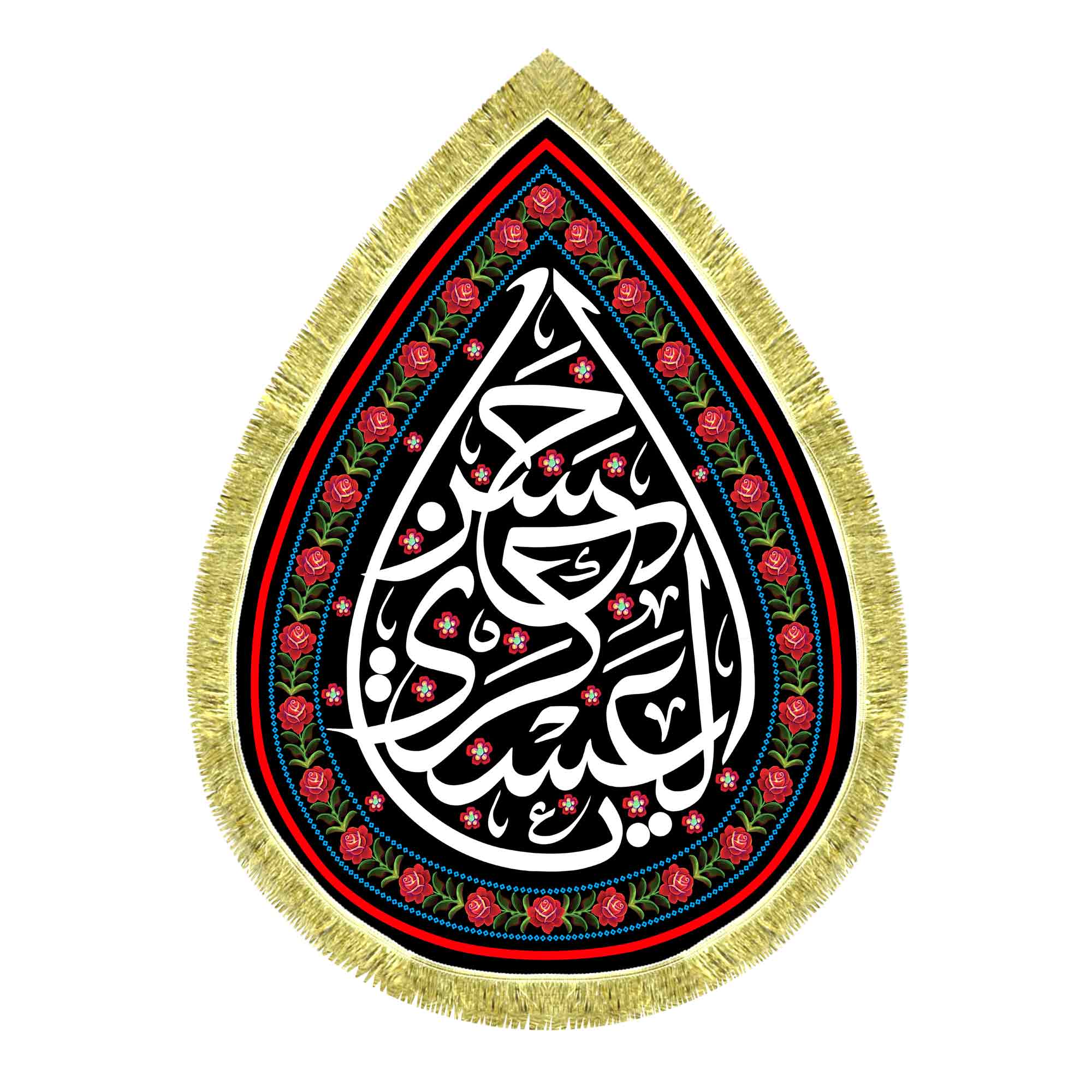 کتیبه مخمل طرح اشک ( قطره ای ) شهادت امام حسن عسکری (ع) با ذکر یا حسن العسکری (ع) که با طراحی جدید دور ریشه در ابعاد مختلف قابل سفارش است. استفاده شده از پارچه مخمل درجه یک قابل شستشو و با بهترین کیفیت چاپ که همراه با ریشه دوزی دور و بندینک آویز می باشد. این محصول از طراحی تا چاپ به طور کامل در انتشارات مشهور به تولید رسیده است.
