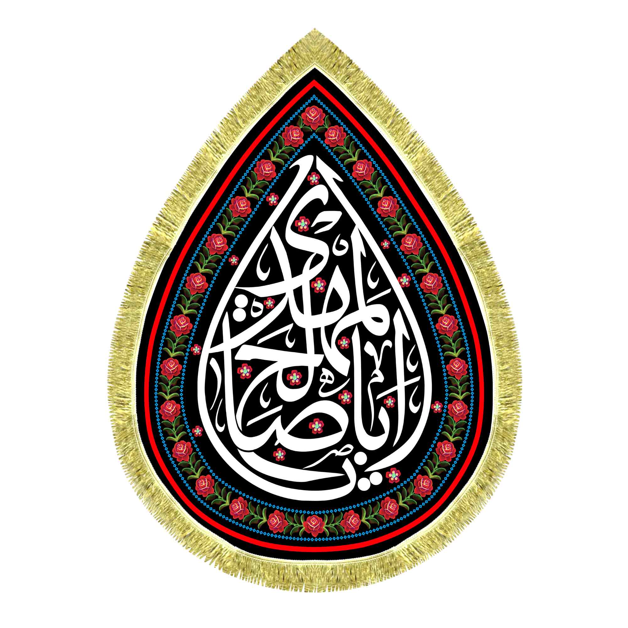 کتیبه مخمل طرح اشک ( قطره ای ) امام زمان (عج) با ذکر یا اباصالح المهدی (عج) که با طراحی جدید دور ریشه در ابعاد مختلف قابل سفارش است. استفاده شده از پارچه مخمل درجه یک قابل شستشو و با بهترین کیفیت چاپ که همراه با ریشه دوزی دور و بندینک آویز می باشد. این محصول از طراحی تا چاپ به طور کامل در انتشارات مشهور به تولید رسیده است.