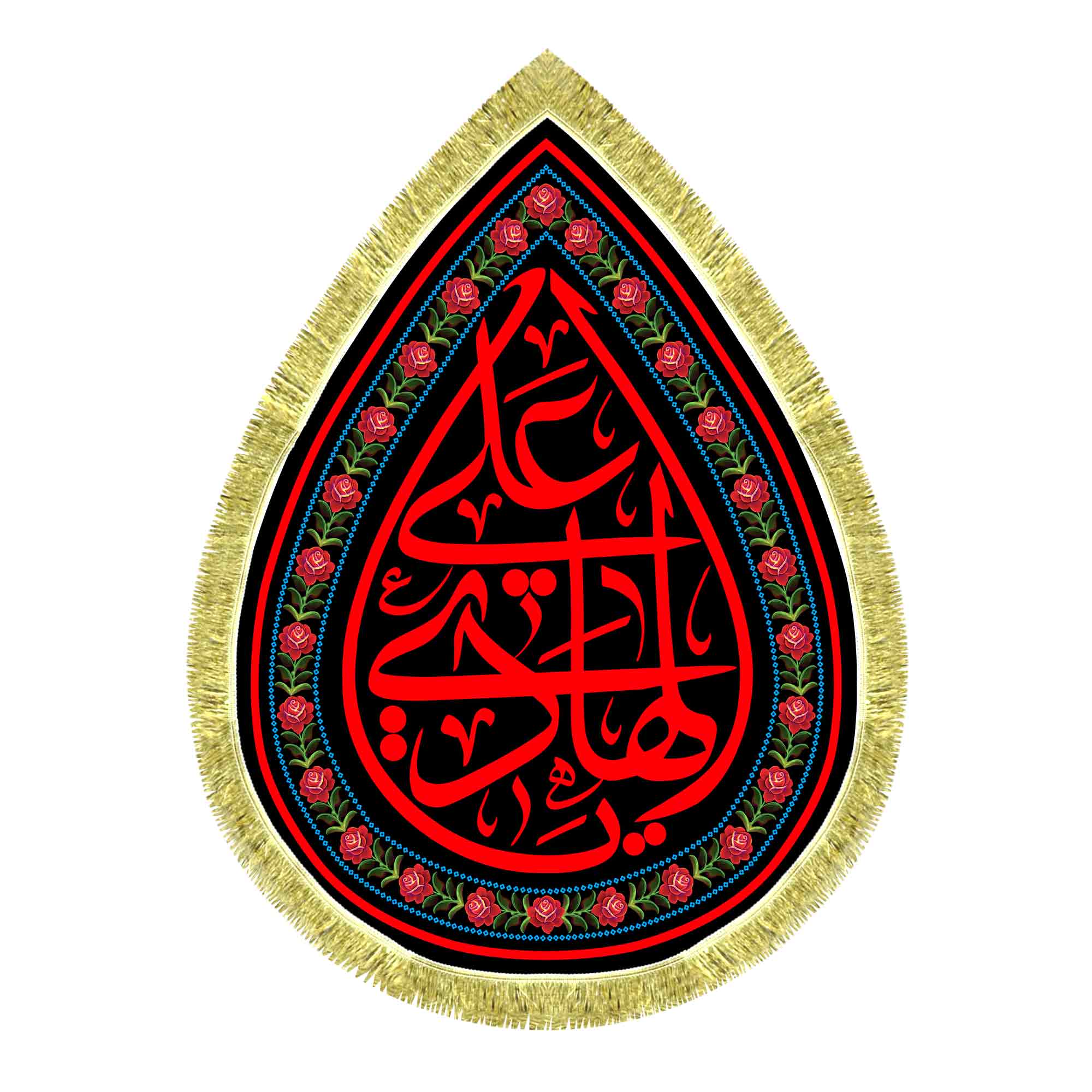 کتیبه مخمل طرح اشک ( قطره ای ) شهادت امام هادی (ع) با ذکر یا علی الهادی (ع) که با طراحی جدید دور ریشه در ابعاد مختلف قابل سفارش است. استفاده شده از پارچه مخمل درجه یک قابل شستشو و با بهترین کیفیت چاپ که همراه با ریشه دوزی دور و بندینک آویز می باشد. این محصول از طراحی تا چاپ به طور کامل در انتشارات مشهور به تولید رسیده است.