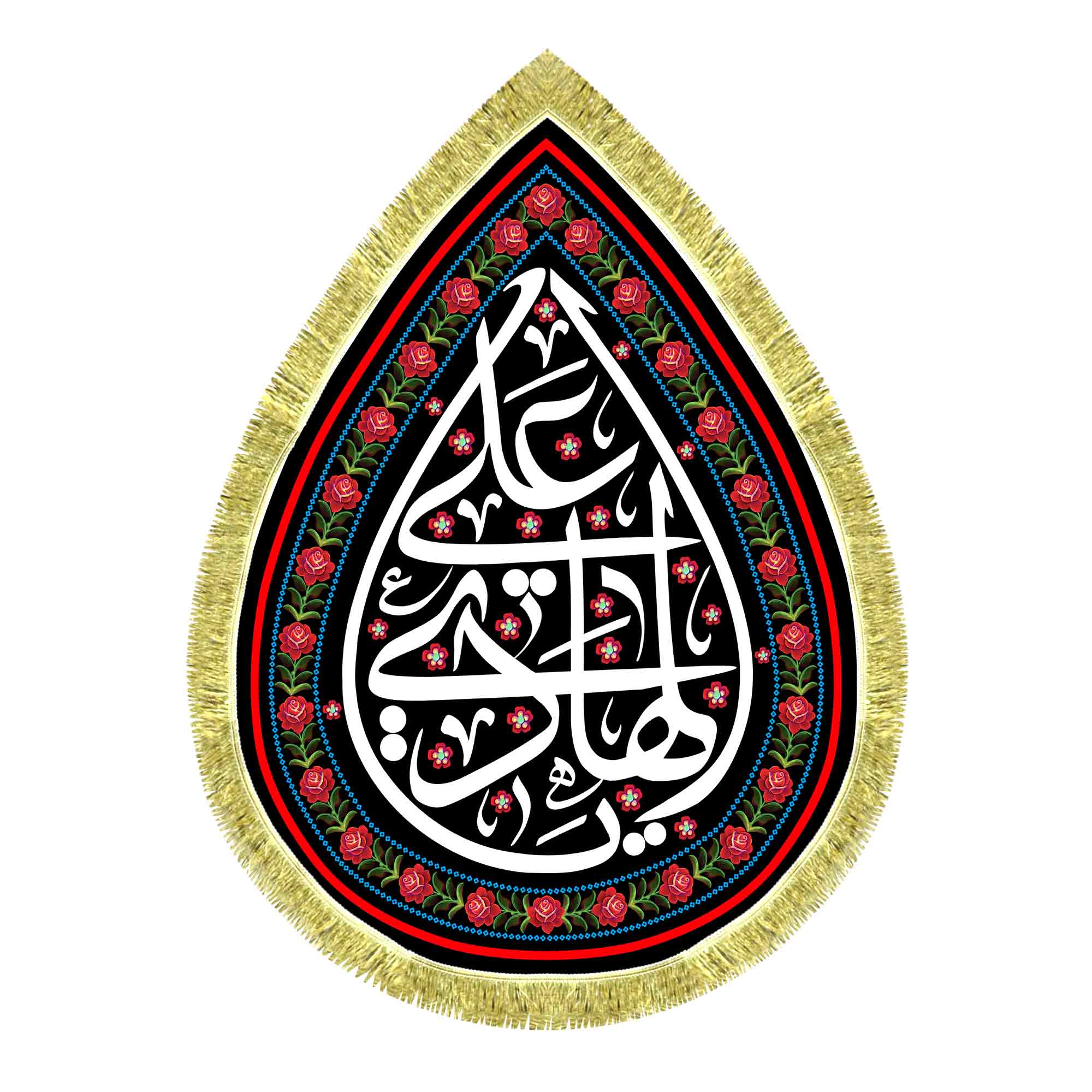 کتیبه مخمل طرح اشک ( قطره ای ) شهادت امام هادی (ع) با ذکر یا علی الهادی (ع) که با طراحی جدید دور ریشه در ابعاد مختلف قابل سفارش است. استفاده شده از پارچه مخمل درجه یک قابل شستشو و با بهترین کیفیت چاپ که همراه با ریشه دوزی دور و بندینک آویز می باشد. این محصول از طراحی تا چاپ به طور کامل در انتشارات مشهور به تولید رسیده است.