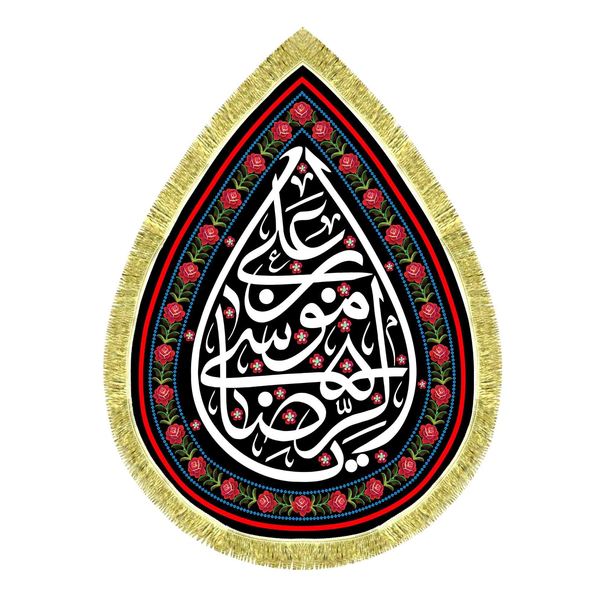 کتیبه مخمل طرح اشک ( قطره ای ) شهادت امام رضا (ع) با ذکر یا علی بن موسی الرضا (ع) که با طراحی جدید دور ریشه در ابعاد مختلف قابل سفارش است. استفاده شده از پارچه مخمل درجه یک قابل شستشو و با بهترین کیفیت چاپ که همراه با ریشه دوزی دور و بندینک آویز می باشد. این محصول از طراحی تا چاپ به طور کامل در انتشارات مشهور به تولید رسیده است.