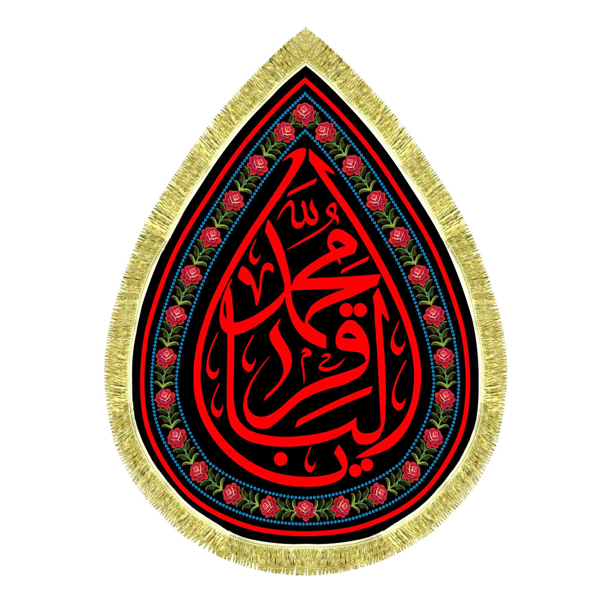 کتیبه مخمل طرح اشک ( قطره ای ) شهادت امام محمد باقر (ع) با ذکر یا محمد الباقر (ع) که با طراحی جدید دور ریشه در ابعاد مختلف قابل سفارش است. استفاده شده از پارچه مخمل درجه یک قابل شستشو و با بهترین کیفیت چاپ که همراه با ریشه دوزی دور و بندینک آویز می باشد. این محصول از طراحی تا چاپ به طور کامل در انتشارات مشهور به تولید رسیده است.