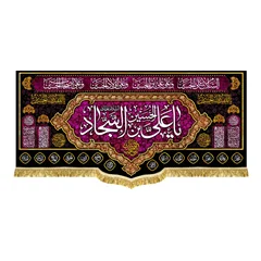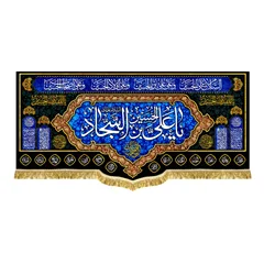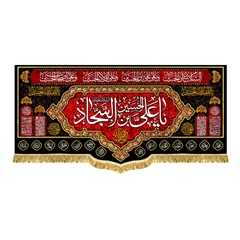 کتیبه ( پرچم ) مخمل شهادت امام سجاد (ع) با ذکر یا علی بن الحسین السجاد (ع) به همراه اسامی چهارده معصوم (ع) ، السلام علیک یا اباعبدالله الحسین (ع) ، یا ابالفضل العباس (ع) و یا زینب کبری (س) که با طراحی جدید در ابعاد مختلف قابل سفارش است. استفاده شده از پارچه مخمل قابل شستشو با بهترین کیفیت چاپ و پارچه که همراه با دور دوزی ، ریشه دوزی و بندینک آویز می باشد. این محصول از طراحی تا چاپ به طور کامل در انتشارات مشهور به تولید رسیده است.