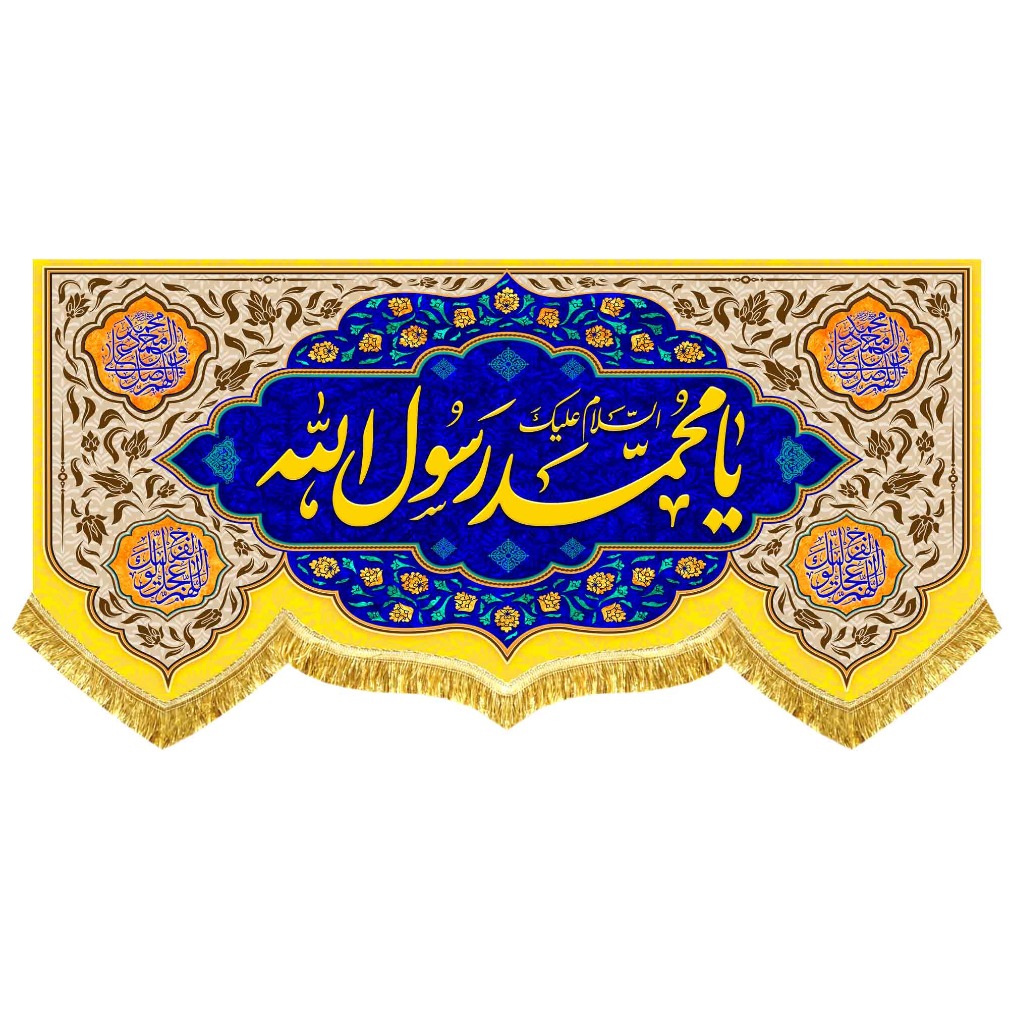 کتیبه ( دکور ) مخمل طرح کاشی پیامبر اکرم (ص ) با ذکر محمد رسول الله که با طراحی جدید در ابعاد مختلف قابل سفارش است. استفاده شده از پارچه مخمل درجه یک قابل شستشو و با بهترین کیفیت چاپ که همراه با دور دوزی ، ریشه دوزی و بندینک آویز می باشد. این محصول از طراحی تا چاپ به طور کامل در انتشارات مشهور به تولید رسیده است.