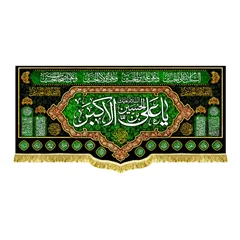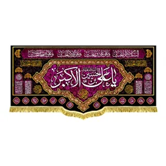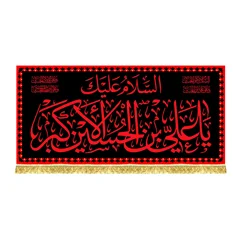 کتیبه ( پرچم ) مخمل حضرت علی اکبر (ع) با ذکر یا علی بن الحسین الاکبر (ع) به همراه اسامی چهارده معصوم (ع) و یا اباعبدالله الحسین (ع) ، صلوات ، چهار سلام زیارت عاشورا که با طراحی جدید و رنگبندی متنوع مناسب ولادت و شهادت حضرت علی اکبر (ع) در ابعاد مختلف قابل سفارش است. استفاده شده از پارچه مخمل درجه یک قابل شستشو با بهترین کیفیت چاپ و پارچه که همراه با دور دوزی و ریشه دوزی می باشد. این محصول از طراحی تا چاپ به طور کامل در مجموعه انتشارات مشهور به تولید رسیده است.