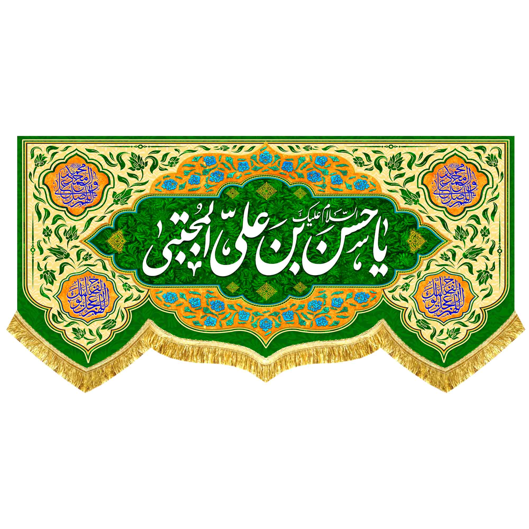 کتیبه ( پرچم ) مخمل ولادت امام حسن (ع) با ذکر السلام علیک یا حسن بن علی المجتبی (ع) به همراه اسامی چهارده معصوم (ع) ، اللهم عجل لولیک الفرج ، اللهم صل علی محمد و آل محمد و عجل فرجهم ، دعای سلامتی امام زمان (عج) که با طراحی جدید و رنگبندی متنوع در ابعاد مختلف قابل سفارش است. استفاده شده از پارچه مخمل درجه یک قابل شستشو با بهترین کیفیت چاپ و پارچه که همراه با دور دوزی و ریشه دوزی می باشد. این محصول از طراحی تا چاپ به طور کامل در مجموعه انتشارات مشهور به تولید رسیده است.