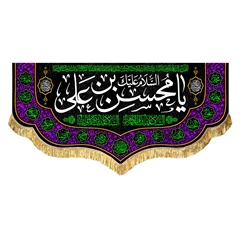 کتیبه ( پرچم ) مخمل شهادت حضرت محسن (ع) با ذکر السلام علیک یا محسن بن علی (ع) به همراه اسامی چهارده معصوم (ع) ، السلام علیک یا فاطمه الزهرا (س) ، السلام علیک یا علی بن ابیطالب (ع) ، صلوات ، اللهم عجل لولیک الفرج ، دعای سلامتی امام زمان (عج) که با طراحی جدید و رنگبندی متنوع در ابعاد مختلف قابل سفارش است. استفاده شده از پارچه مخمل درجه یک قابل شستشو با بهترین کیفیت چاپ و پارچه که همراه با دور دوزی و ریشه دوزی می باشد. این محصول از طراحی تا چاپ به طور کامل در مجموعه انتشارات مشهور به تولید رسیده است.