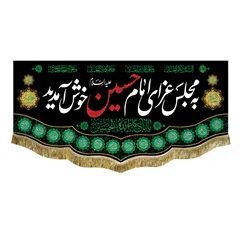 کتیبه ( پرچم ) مخمل به مجلس عزای امام حسین (ع) خوش آمدید به همراه اسامی مبارک چهارده معصوم (ع) ، یا اباعبدالله الحسین (ع) ، السلام علیک یا ابوالفضل العباس (ع) ، السلام علیک یا زینب کبری (س) ، چهار سلام زیارت عاشورا ( السلام علي الحسين و علي علي بن الحسين و علي اولاد الحسين و علي اصحاب الحسين ) که با طراحی جدید و رنگبندی متنوع، مناسب مجالس عزاداری امام حسین (ع) در ابعاد مختلف قابل سفارش است. استفاده شده از پارچه مخمل قابل شستشو با بهترین کیفیت چاپ و پارچه که همراه با دور دوزی ، ریشه دوزی و بندینک آویز می باشد. این محصول از طراحی تا چاپ به طور کامل در مجموعه انتشارات مشهور به تولید رسیده است.