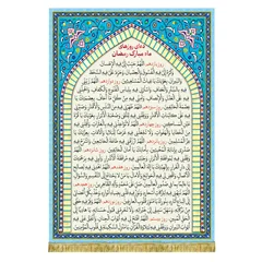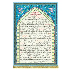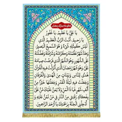 کتیبه ( پرچم ) مخمل ماه مبارک رمضان با ذکر شهر رمضان الذی انزل فيه القرآن به همراه یا علی بن ابیطالب (ع) ، دعای سلامتی امام زمان (عج) که با طراحی جدید در ابعاد مختلف قابل سفارش است. استفاده شده از پارچه مخمل درجه یک قابل شستشو با بهترین کیفیت چاپ و پارچه که همراه با دور دوزی و ریشه دوزی می باشد. این محصول از طراحی تا چاپ به طور کامل در مجموعه انتشارات مشهور به تولید رسیده است.