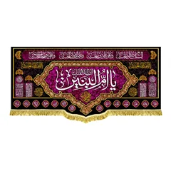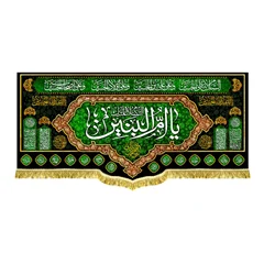 پرچم ( کتیبه ) مخمل عمودی آویز حضرت ام البنین (س) با ذکر السلام علیک یا ام البنین (س) به همراه چهارده معصوم (ع) - طراحی جدید مجموعه چاپ کتیبه انتشارات مشهور، مناسب منازل و هیئات مذهبی در ابعاد مختلف / چاپ بر روی پارچه مخمل قابل شستشو با بهترین کیفیت چاپ و پارچه، همراه با دور دوزی و ریشه دوزی می باشد.