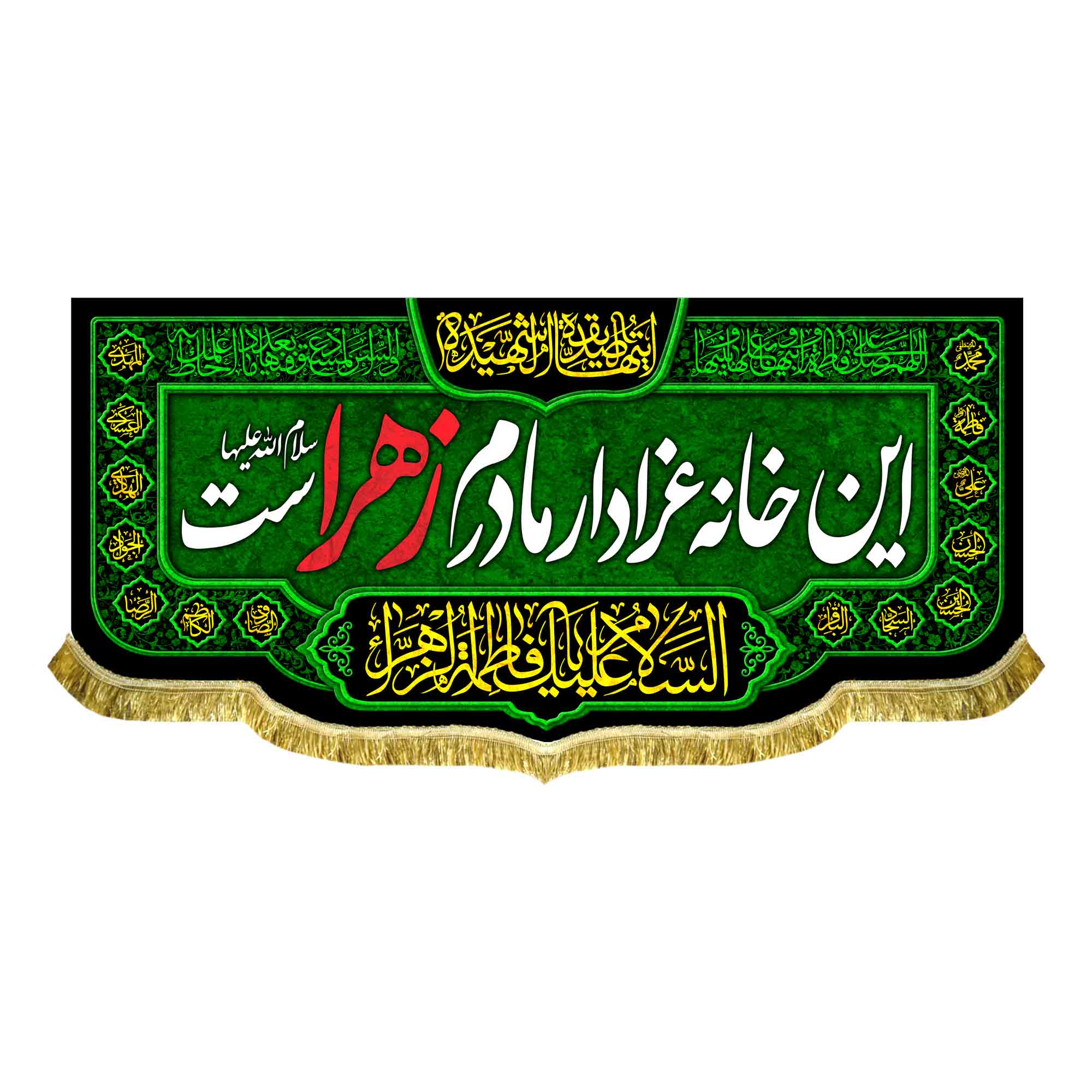 کتیبه ( پرچم ) مخمل فاطمیه شهادت حضرت فاطمه زهرا (س) با ذکر این خانه عزادار مادرم زهراست به همراه اسامی مبارک چهارده معصوم (ع) ، صلوات حضرت زهرا (س) ، السلام علیک یا فاطمه الزهرا (س) که با طراحی جدید مناسب مجالس عزاداری فاطمیه و شهادت حضرت زهرا (س) در ابعاد مختلف قابل سفارش است. استفاده شده از پارچه مخمل درجه یک قابل شستشو و با بهترین کیفیت چاپ که همراه با دور دوزی ، ریشه دوزی و بندینک آویز می باشد. این محصول از طراحی تا چاپ به طور کامل در انتشارات مشهور به تولید رسیده است.