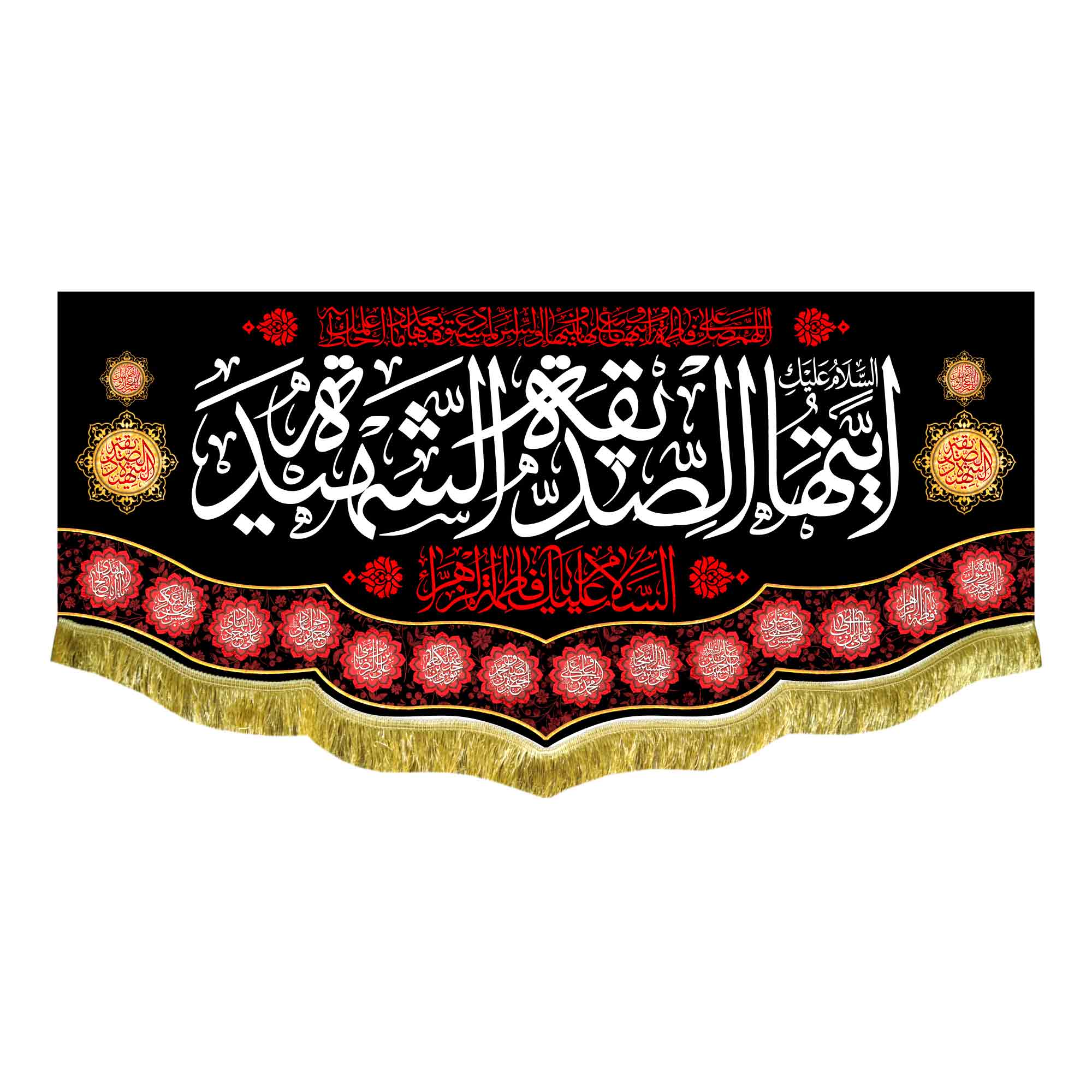 کتیبه ( پرچم ) مخمل شهادت حضرت فاطمه زهرا (س) با ذکر السلام علیک ایتها الصدیقه الشهیده به همراه اسامی مبارک چهارده معصوم (ع) ، صلوات حضرت زهرا (س) ، السلام علیک یا فاطمه الزهرا (س) که با طراحی جدید مناسب مجالس عزاداری فاطمیه و شهادت حضرت زهرا (س) در ابعاد مختلف قابل سفارش است. استفاده شده از پارچه مخمل درجه یک قابل شستشو و با بهترین کیفیت چاپ که همراه با دور دوزی ، ریشه دوزی و بندینک آویز می باشد. این محصول از طراحی تا چاپ به طور کامل در انتشارات مشهور به تولید رسیده است.