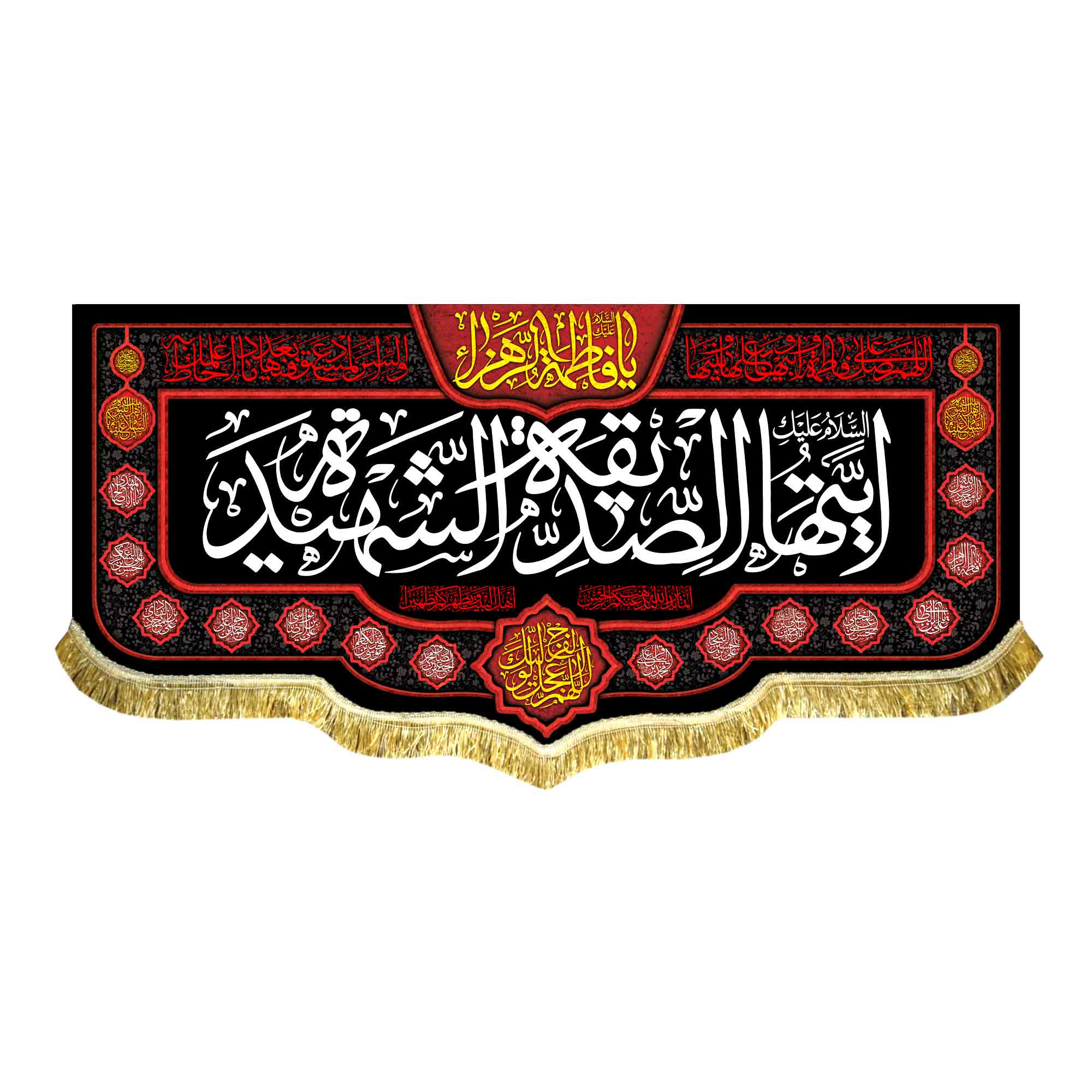 دکور ( کتیبه ) مخمل فاطمیه شهادت حضرت فاطمه زهرا (س) با ذکر السلام علیک ایتها الصدیقه الشهیده به همراه اسامی مبارک چهارده معصوم (ع) ، السلام علیک یا فاطمه الزهرا (س) ، اللهم عجل لولیک الفرج که با طراحی جدید مناسب مجالس عزاداری فاطمیه و شهادت حضرت زهرا (س) در ابعاد مختلف قابل سفارش است. استفاده شده از پارچه مخمل درجه یک قابل شستشو و با بهترین کیفیت چاپ که همراه با دور دوزی ، ریشه دوزی و بندینک آویز می باشد. این محصول از طراحی تا چاپ به طور کامل در انتشارات مشهور به تولید رسیده است.