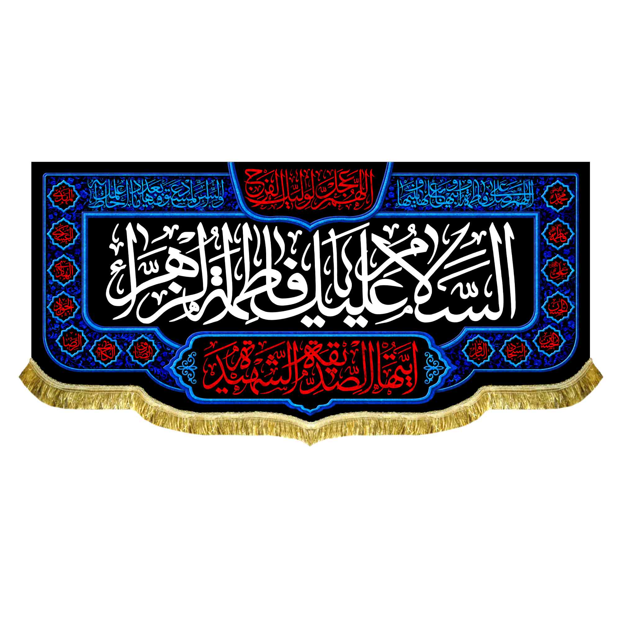 دکور ( کتیبه ) مخمل فاطمیه شهادتی حضرت فاطمه زهرا (س) با ذکر السلام علیک یا فاطمه الزهرا (س) به همراه اسامی مبارک چهارده معصوم (ع) ، صلوات حضرت زهرا (س) ، اللهم عجل لولیک الفرج ، ایتها الصدیقه الشهیده که با طراحی جدید مناسب مجالس عزاداری فاطمیه و شهادت حضرت زهرا (س) در ابعاد مختلف قابل سفارش است. استفاده شده از پارچه مخمل درجه یک قابل شستشو و با بهترین کیفیت چاپ که همراه با دور دوزی ، ریشه دوزی و بندینک آویز می باشد. این محصول از طراحی تا چاپ به طور کامل در انتشارات مشهور به تولید رسیده است.