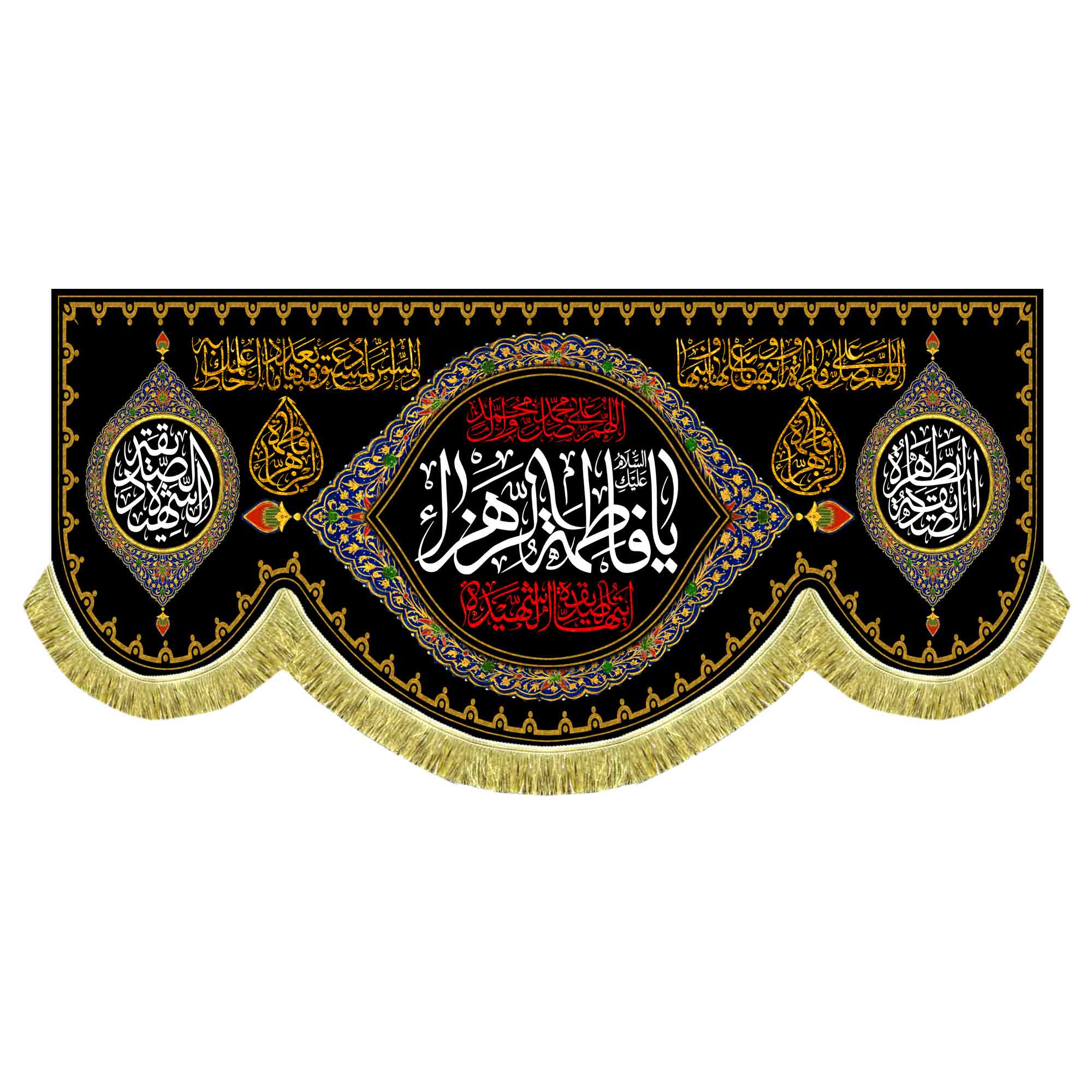 کتیبه ( دکور ) مخمل فاطمیه شهادت حضرت فاطمه زهرا (س) با ذکر السلام علیک یا فاطمه الزهرا (س) به همراه صلوات حضرت زهرا (س) ، صلوات ، السلام علیک ایتها الصدیقه الشهیده که با طراحی جدید مناسب مجالس عزاداری فاطمیه و شهادت حضرت زهرا (س) در ابعاد مختلف قابل سفارش است. استفاده شده از پارچه مخمل درجه یک قابل شستشو و با بهترین کیفیت چاپ که همراه با دور دوزی ، ریشه دوزی و بندینک آویز می باشد. این محصول از طراحی تا چاپ به طور کامل در انتشارات مشهور به تولید رسیده است.